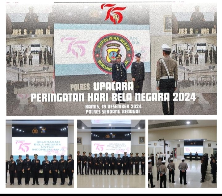 Wakil Kepala Kepolisian Resor (Wakapolres) Serdang Bedagai, Kompol Mukmin Rambe, S.H., memimpin upacara peringatan Hari Bela Negara ke-76 Tahun 2024 di Aula Patriatama Polres Serdang Bedagai, Kamis (19/12/24).